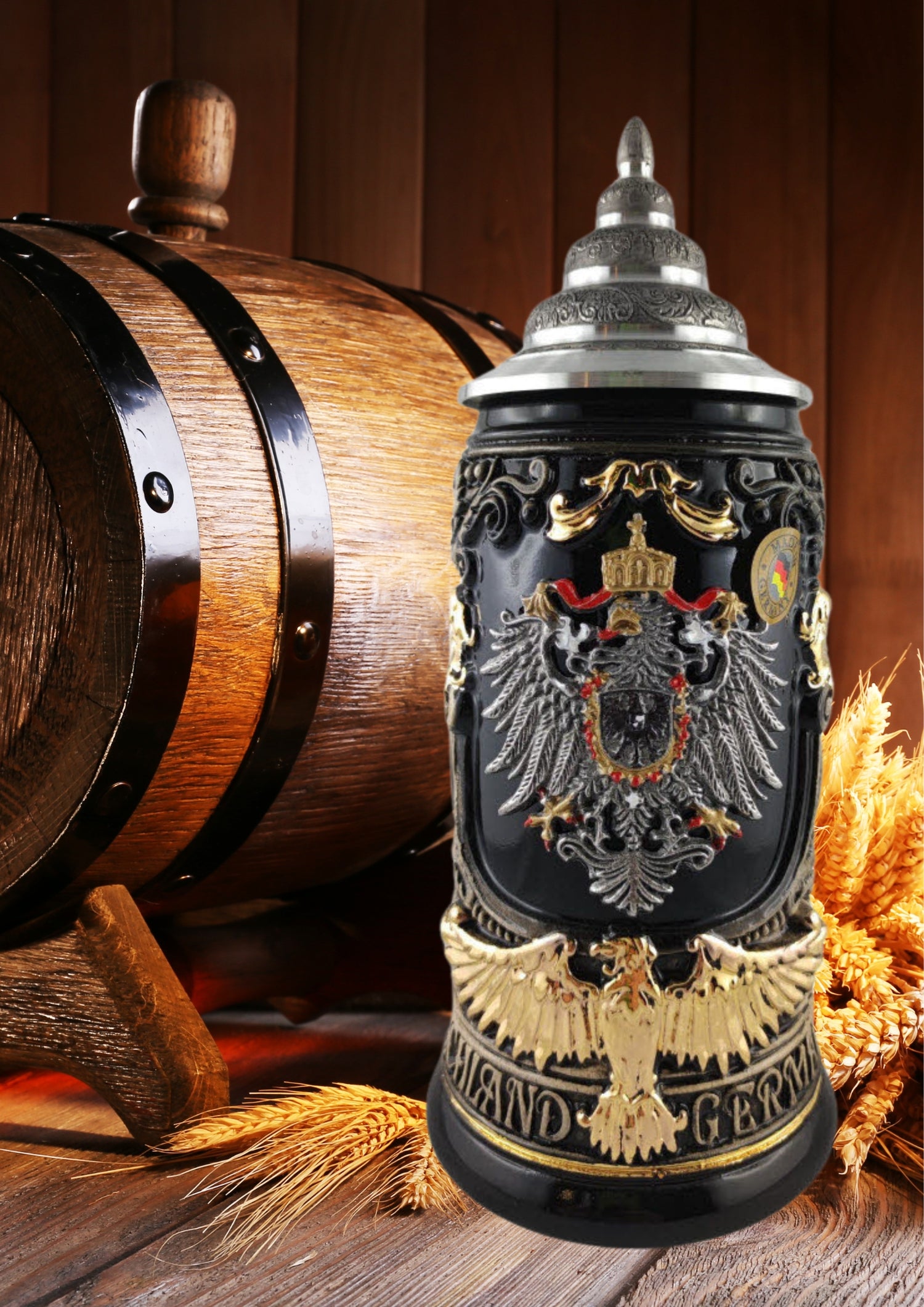 All our steins are unique handcrafted in Germany by use of antique techniques of expert sculpting by Artisans that practice the centuries old craft, of native German stein making.